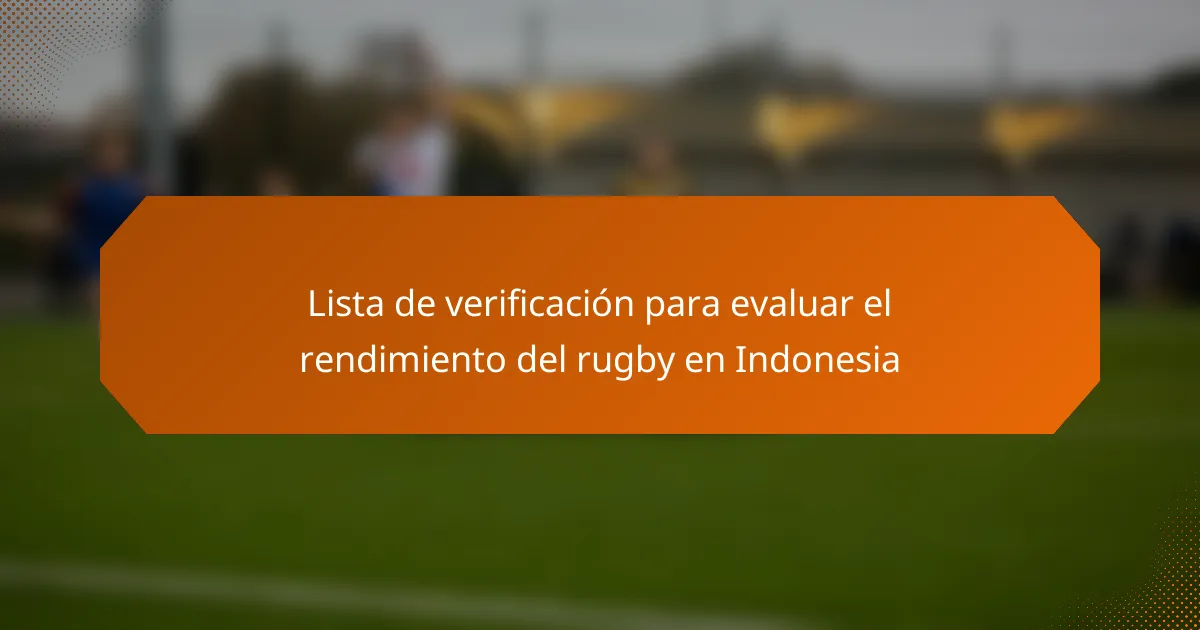 Evaluar el rendimiento del rugby en Indonesia requiere una lista de verificación integral que se centre en los indicadores clave de rendimiento (KPI) como las estadísticas de los partidos, las métricas de los jugadores y la dinámica del equipo. Al utilizar herramientas avanzadas y técnicas de entrenamiento, los entrenadores pueden analizar de manera efectiva el rendimiento individual y del equipo, fomentando un entorno de mejora continua y adaptabilidad estratégica.