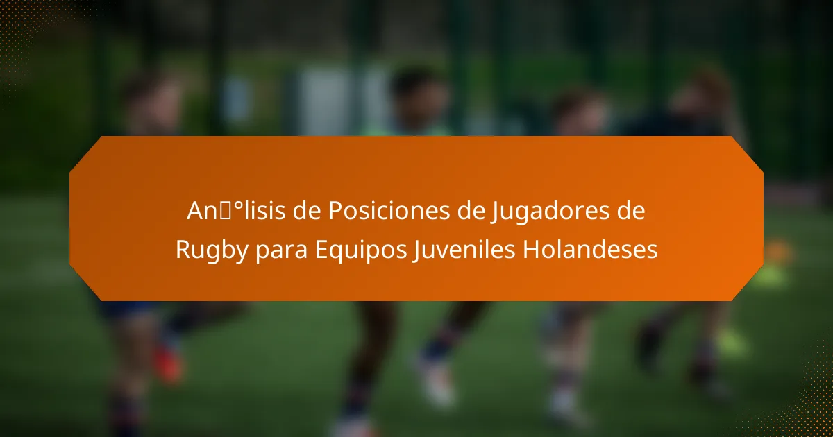 En el rugby juvenil, entender las posiciones de los jugadores es crucial para optimizar la estrategia y el rendimiento del equipo. Al utilizar análisis, los entrenadores de los equipos juveniles holandeses pueden obtener información valiosa sobre el desarrollo y la selección de jugadores, mejorando en última instancia tanto los resultados individuales como los del equipo. Implementar las herramientas de análisis adecuadas puede apoyar aún más el seguimiento del rendimiento y la planificación estratégica, asegurando que los jóvenes atletas alcancen su máximo potencial en el campo.
