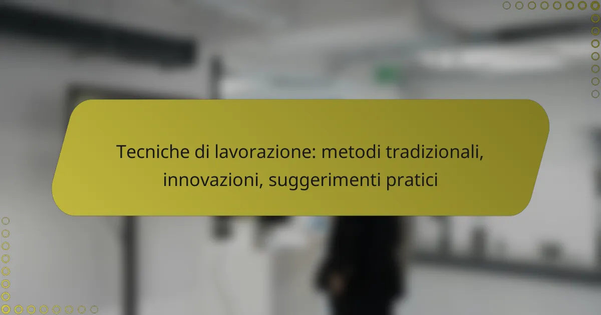 Per ottimizzare le tecniche di lavorazione, è fondamentale adottare approcci sistematici e pratici. Ciò include l’analisi dei processi esistenti, l’implementazione di nuove tecnologie e la formazione continua del personale.